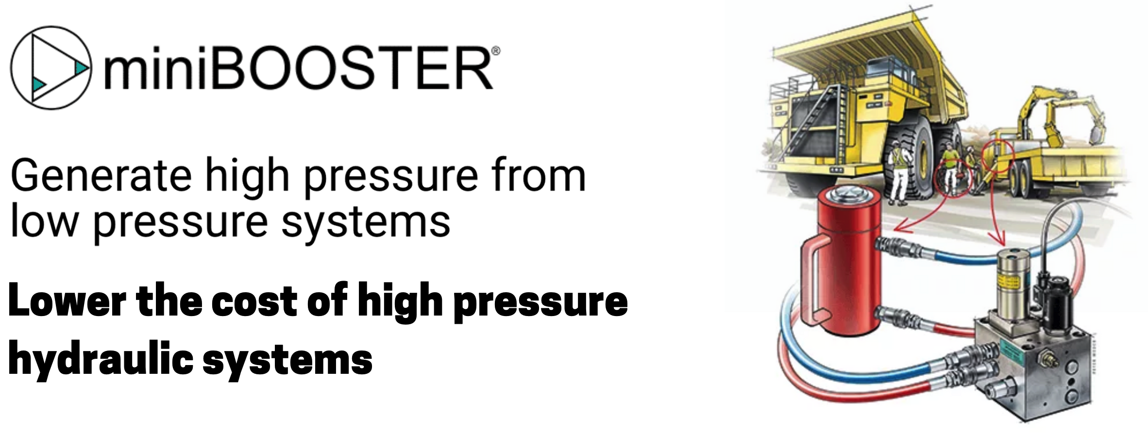 miniBOOSTER is commonly used to supply high pressure to attachments where small cylinders and high force are required.