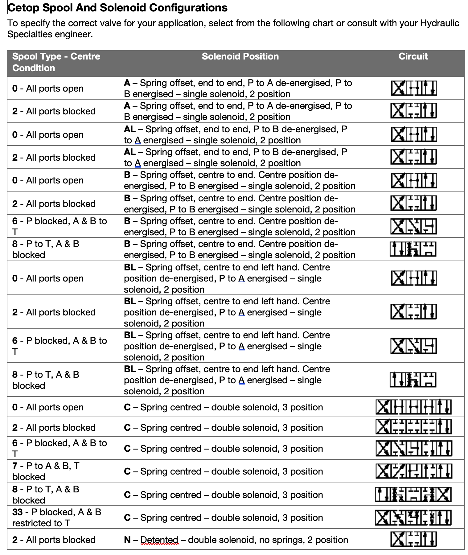 * - Spool type - Click here to view Eaton / Vickers Cetop spool types